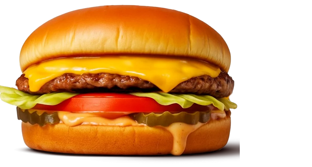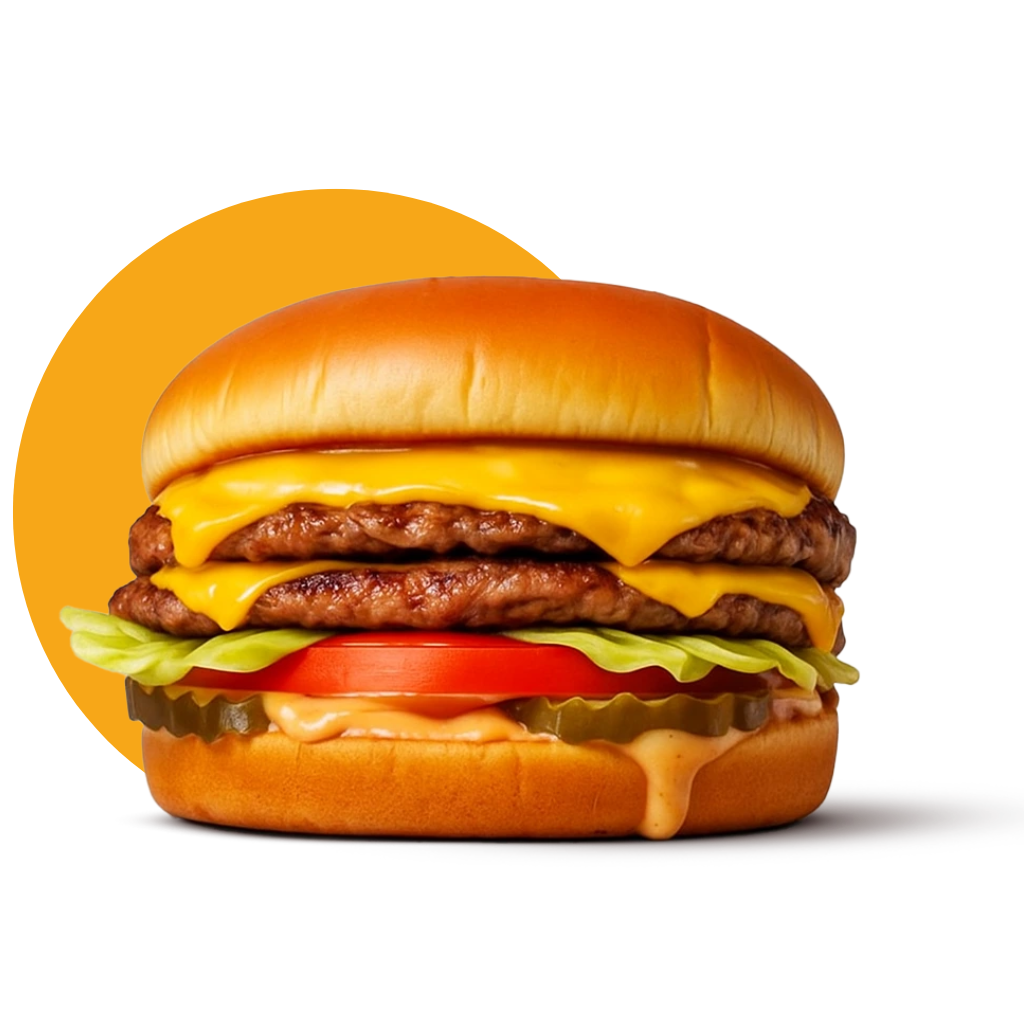 Two All-Beef Patties, Lettuce, Tomato, Onion, Cheese and Go Spread.